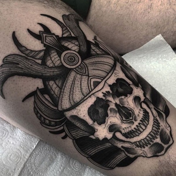 超帅时尚的黑灰骷髅与蛇纹身图案