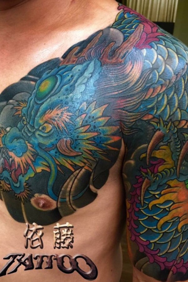 披肩龙纹身图案图片_龙纹身图案大全_纹身图吧