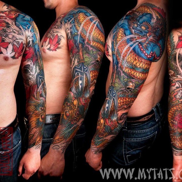 披肩龙纹身图案图片_龙纹身图案大全_纹身图吧