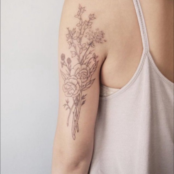 女性肩膀上多款漂亮的花朵纹身图案