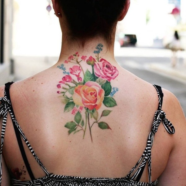 纹身清新小图片 清新而又靓丽色调的花朵纹身图案