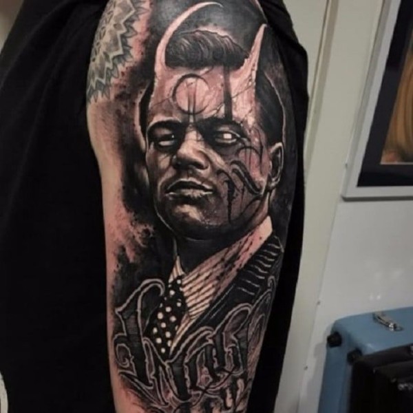 纹身图人物图片 恐怖的暗黑色色调人物纹身图案