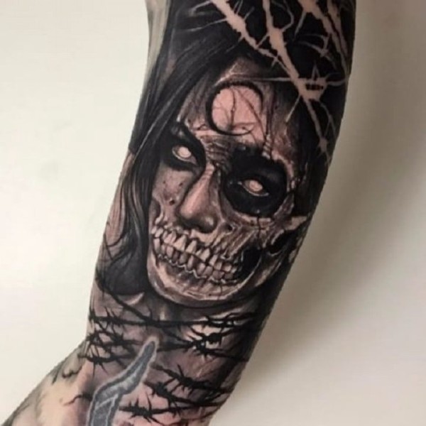 纹身图人物图片 恐怖的暗黑色色调人物纹身图案