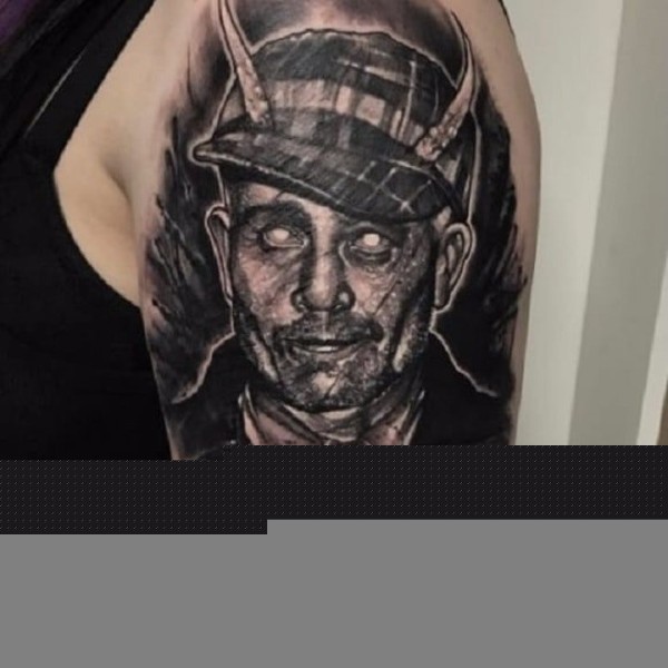 纹身图人物图片 恐怖的暗黑色色调人物纹身图案