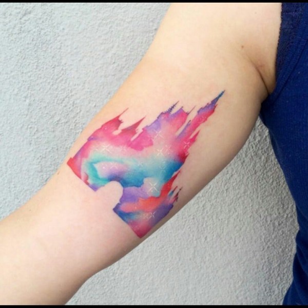 水彩纹身图片 随意而又唯美的水彩泼墨纹身图案