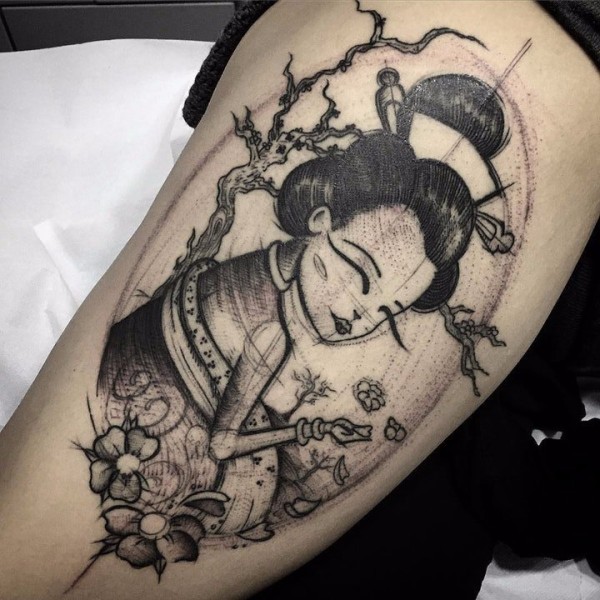 18张各种风格的艺伎纹身图案欣赏
