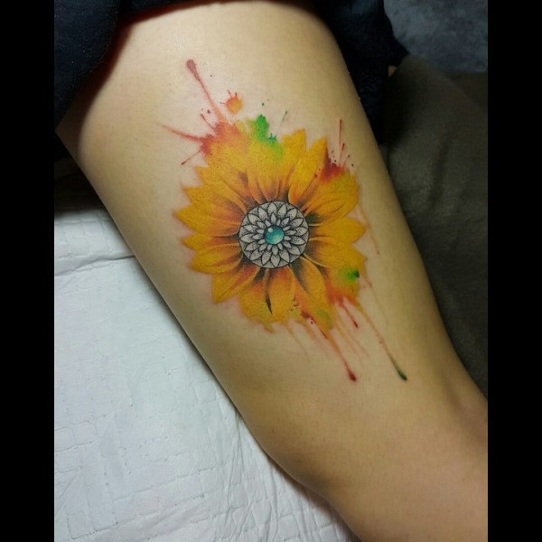 向日葵纹身图案 8款彩绘纹身植物的向日葵纹身图案