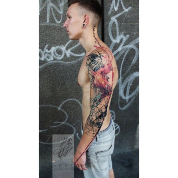 黑色抽象线条纹身水彩纹身的故事涂鸦纹身图案