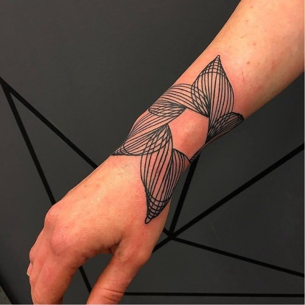 女生后腰纹身黑白灰风格抽象线条纹身图案