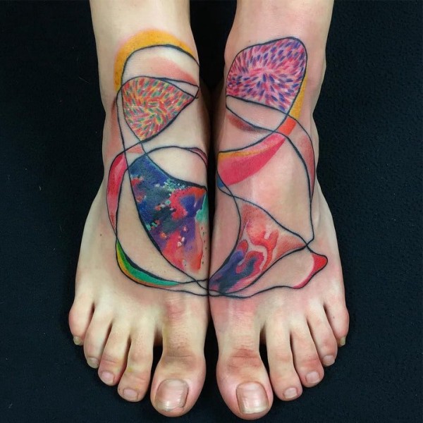 抽象纹身图案 一组黑灰色与彩色搭配抽象纹身创意图案