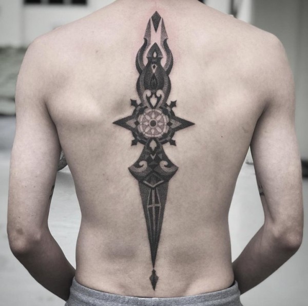 新传统风格的9张男性黑灰大满背纹身图案图片