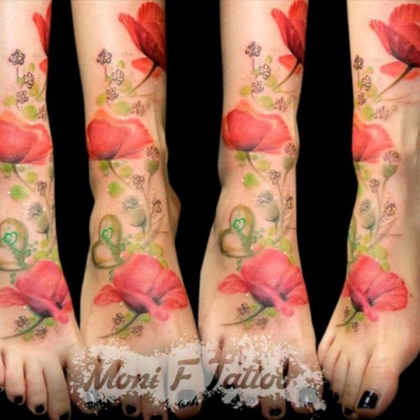 逼真的超现实主义花纹身图案来自纹身师莫拉莱斯