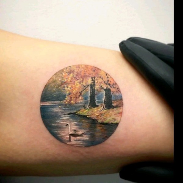 圆形风景纹身--几张几何圆形+风景纹身图案作品