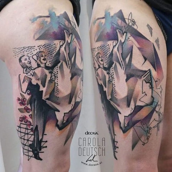 一组大胆的水彩泼墨彩绘技巧渐变纹身图案大全