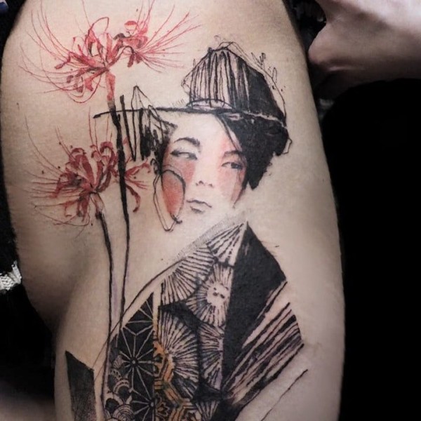 9张艺妓相关的艺伎纹身手稿和图案作品欣赏