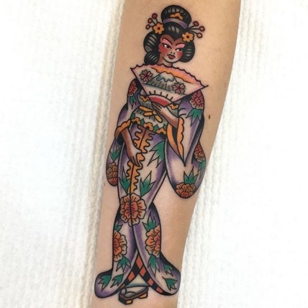 手臂艺伎:9张纹在胳膊上的花旦艺伎纹身图案