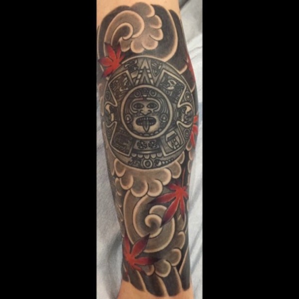 玛雅图腾纹身 黑灰色调象征古代文明的玛雅图腾纹身图案