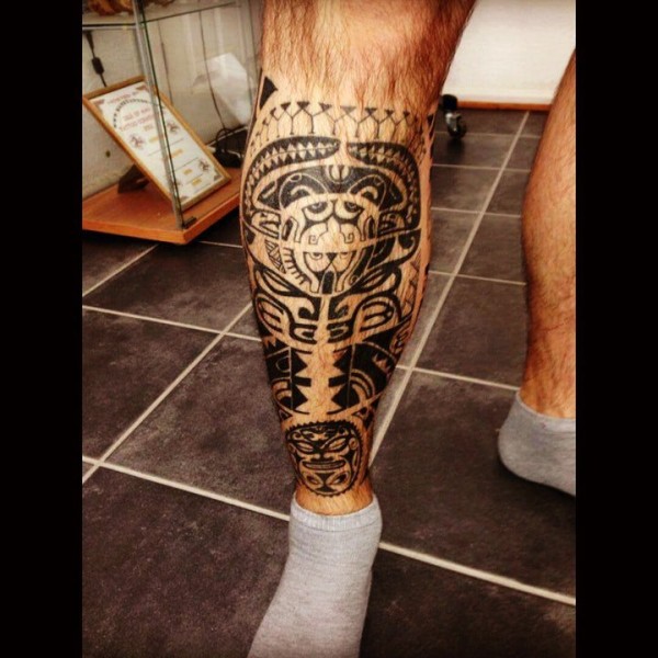 玛雅图腾纹身 黑灰色调象征古代文明的玛雅图腾纹身图案