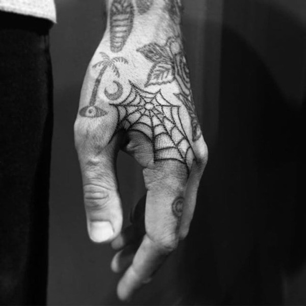 蜘蛛网纹身图案 黑灰色调个性十足的蜘蛛或蜘蛛网纹身图案