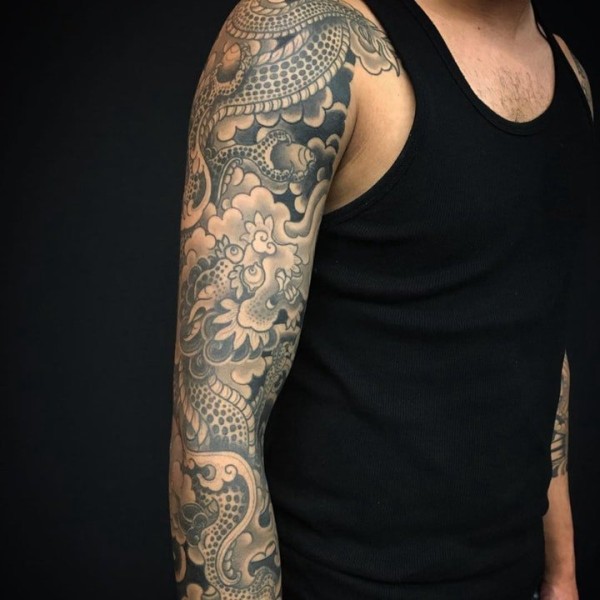 传统龙纹身图案 一组黑灰色调的传统龙纹身图片