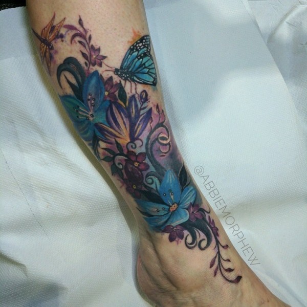 女生腿部漂亮的彩色蝴蝶结纹身图案_蝴蝶纹身图案大全_纹身图吧