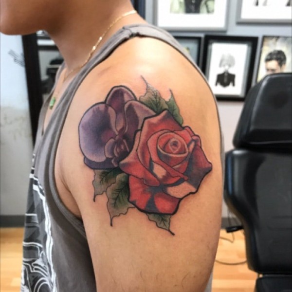 欧美玫瑰纹身 男生手臂上花朵纹身图片