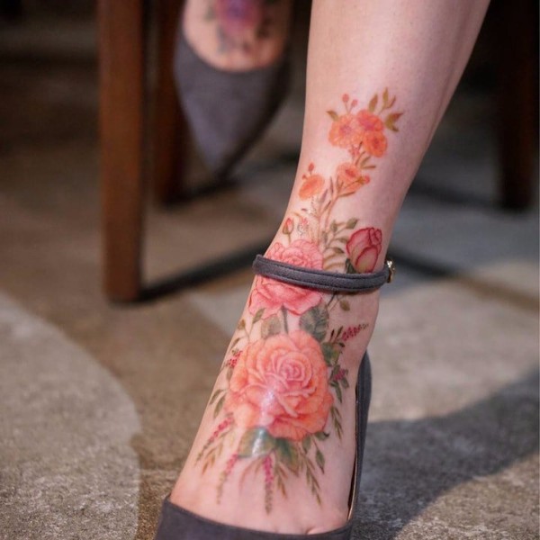 花朵纹身图案 美丽多姿的彩绘纹身植物花朵纹身图案
