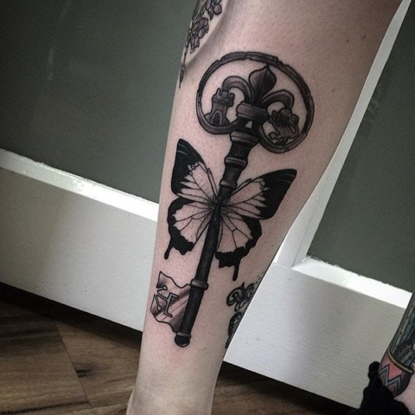 腿部好看的欧美风格的蝴蝶纹身图案_蝴蝶纹身图案大全_纹身图吧