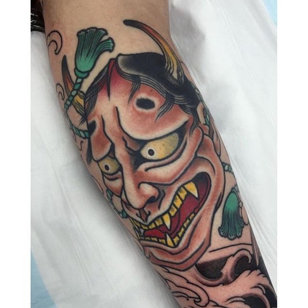 日本鬼面具纹身 鬼面獠牙的日本鬼面具纹身图片