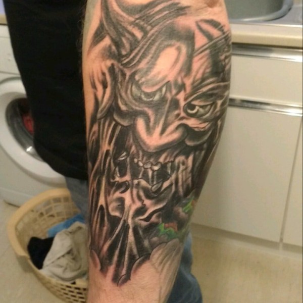 日本鬼面具纹身 面容恐怖的日本鬼面具纹身图案