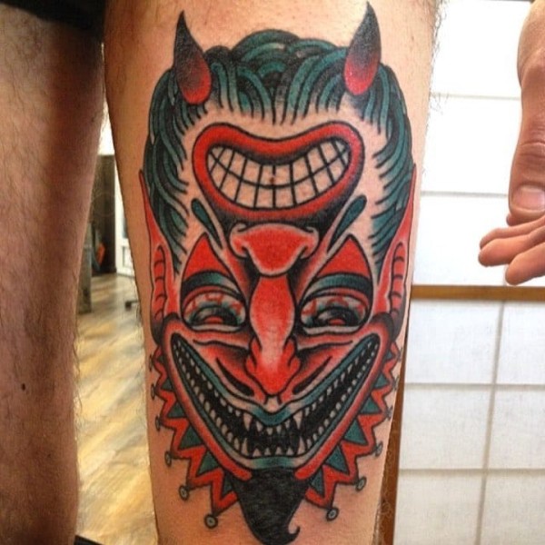 日本鬼面具纹身 面容恐怖的日本鬼面具纹身图案