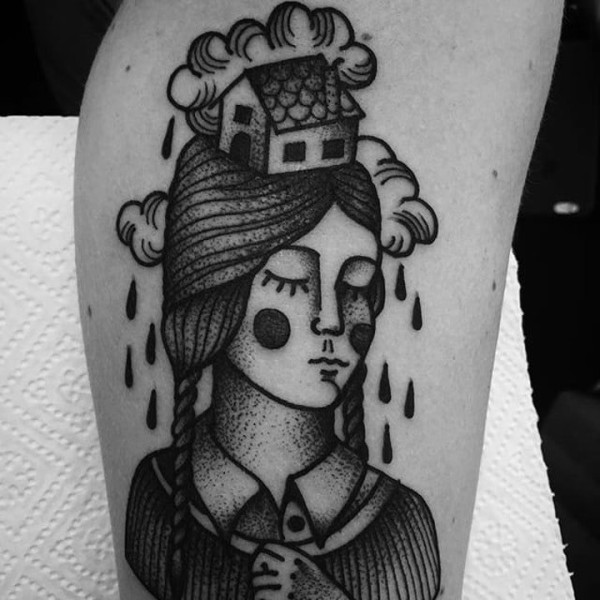 天气纹身:关于云朵和雨点的一组天气纹身图案