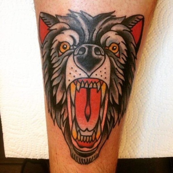 胸部old school狼头纹身图案