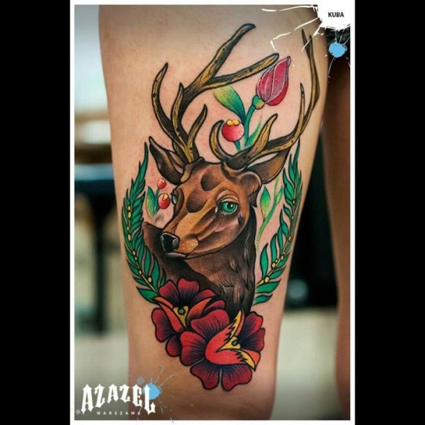 9张和鹿角鹿头相关的纹身图案作品欣赏