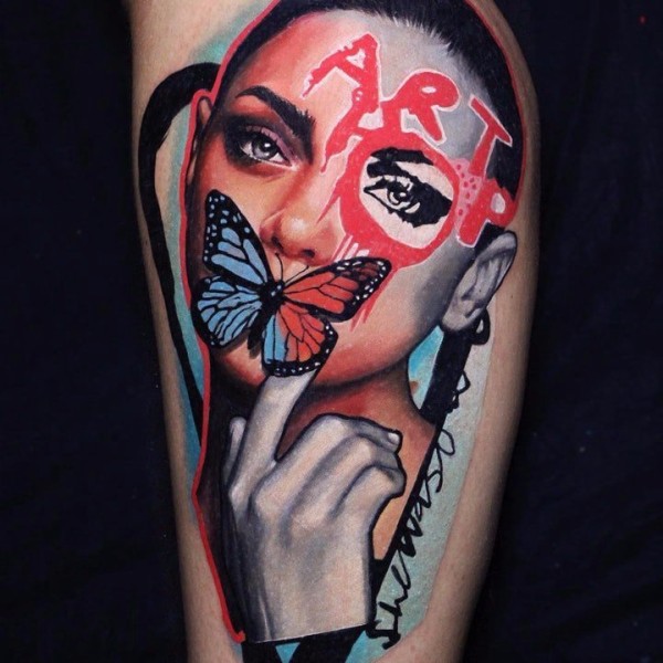 腿部好看的欧美风格的蝴蝶纹身图案_蝴蝶纹身图案大全_纹身图吧
