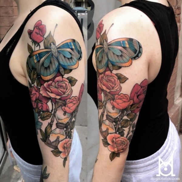 腿部好看的欧美风格的蝴蝶纹身图案_蝴蝶纹身图案大全_纹身图吧