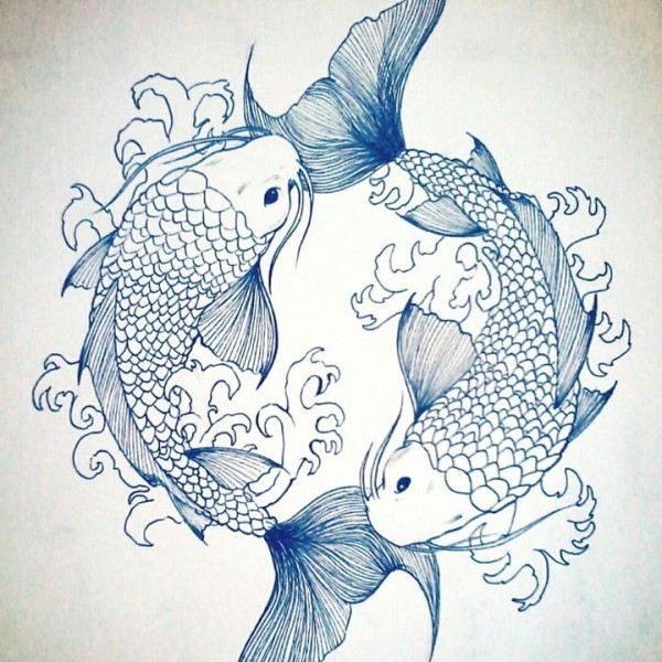 双鱼座纹身手稿_45张十二星座之双鱼手稿纹身图案
