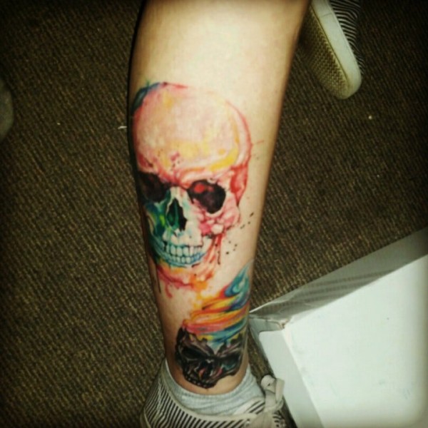 帅气的彩色花腿纹身水墨画纹身图案