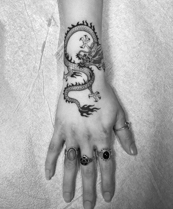 龙纹身图案 形态各异的黑灰或彩绘龙纹身图片