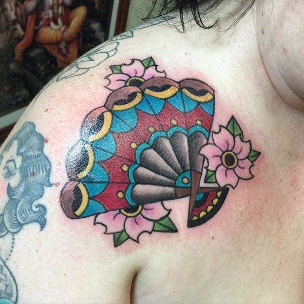 扇子纹身图案 10张彩绘纹身日本艺妓扇子纹身图案