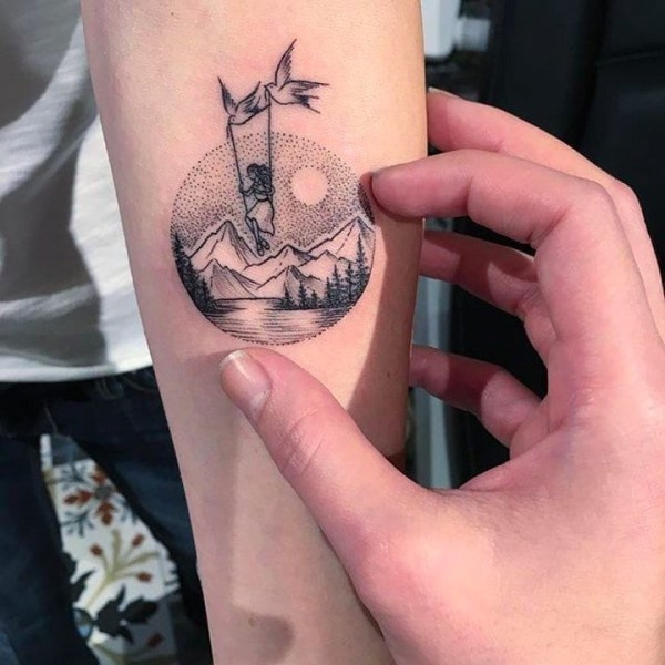 圆形风景纹身--几张几何圆形+风景纹身图案作品