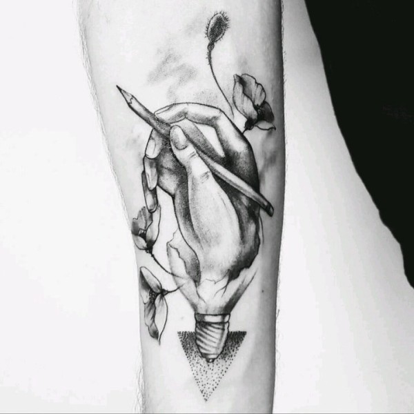 黑灰线条纹身手稿 铅笔素描纹身风格的黑灰线条纹身图片