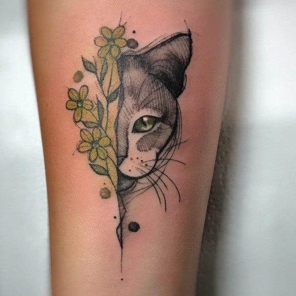水彩泼墨纹身图片 水彩与线条交融的彩色泼墨纹身图案