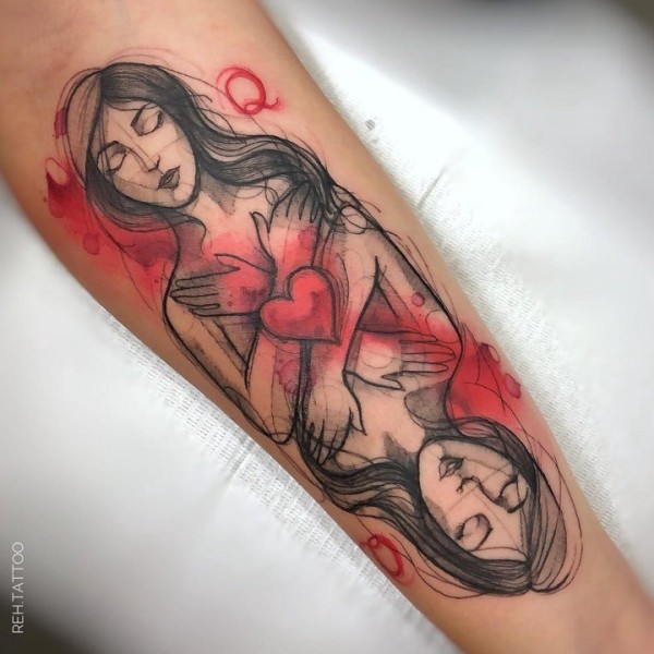 胳膊原创水彩心上钥匙纹身图案
