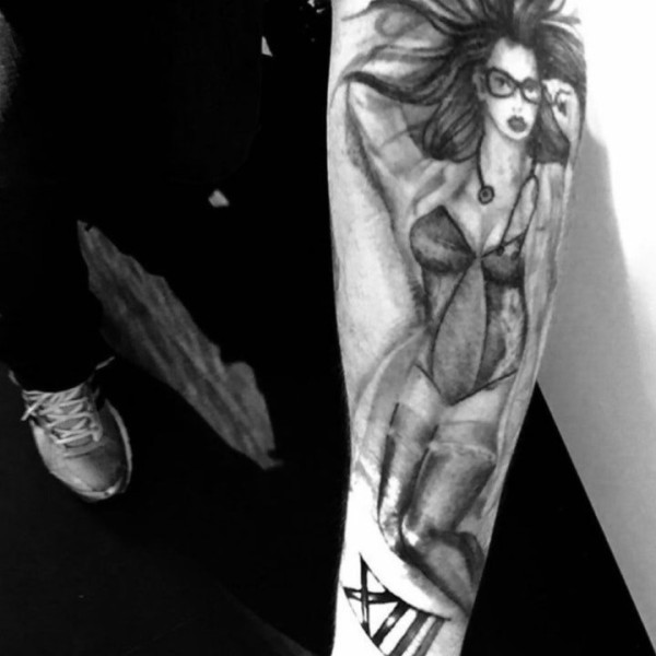 丰乳肥臀的性感美女和绿色老爷车纹身