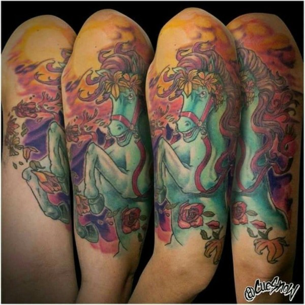 马纹身图案 10款形态各异的彩绘纹身动物马纹身图案
