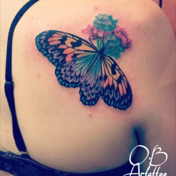 女性喜欢的漂亮的3D立体蝴蝶纹身图案