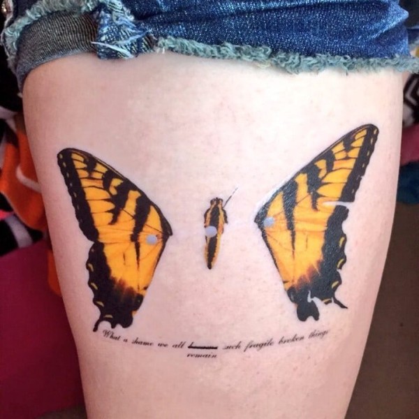腿部好看的欧美风格的蝴蝶纹身图案_蝴蝶纹身图案大全_纹身图吧
