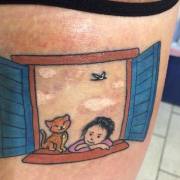 潮流纹身-色彩可爱的小猫小狗手臂纹身图片