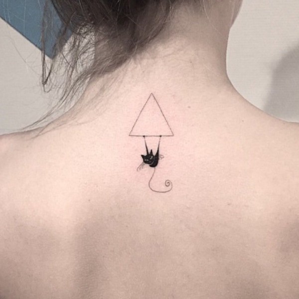 一组黑灰色的几何图形+小猫纹身图案欣赏